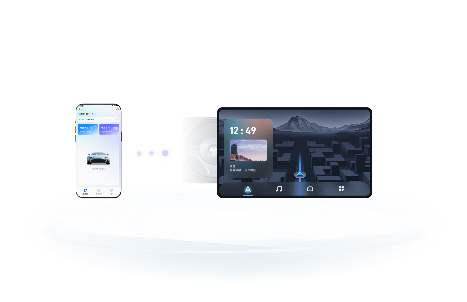 打破小屏局限,手机内容随时随地投屏到车机,无须繁琐的连接方式,扫码即可连接